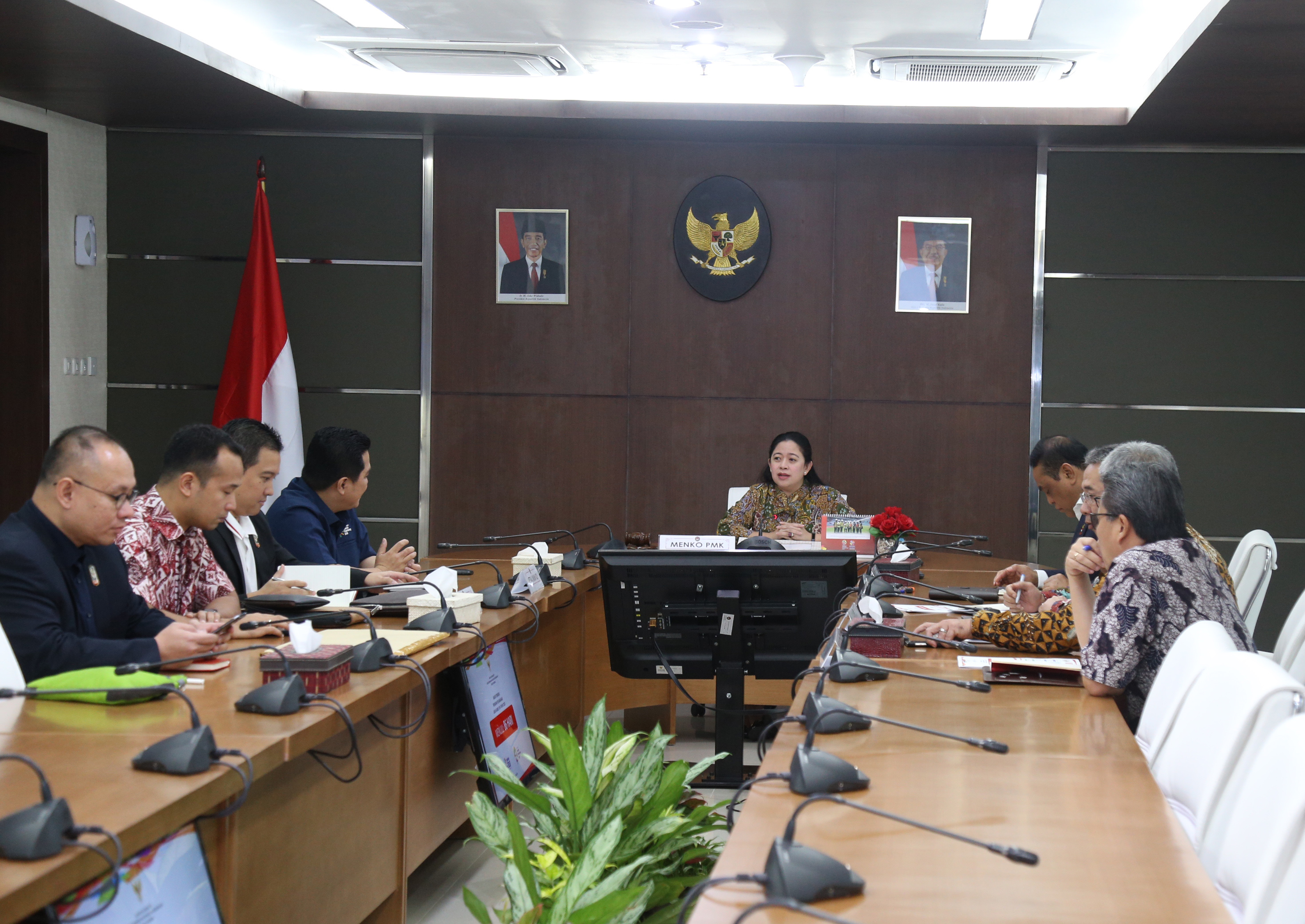 Jakarta (23/05) – Menko PMK Puan Maharani, Rabu siang, memimpin Rakor Terbatas Persiapan Pelaksanaan Asian Games XVIII di Kemenko PMK, Jakarta. Kali ini persiapan atlet hingga sponsorship masih dibahas.