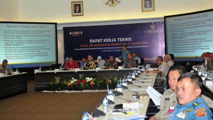 Jakarta, 13 Mei – Asdep Urusan Pemberdayaan dan Kerukunan Umat Beragama , Iwan Eka (ketiga kiri) mewakili Deputi Menko Bidang Koordinasi Pendidikan dan Agama memimpin Rapat Koordinasi tentang hasil pelaksanaan Inpres No.3 Tahun 2014 yang terkait penghimpunan Zakat di lingkungan Kementerian/Lembaga, Rabu , 13/5/2015 di Kemenko PMK, Jl. Medan Merdeka Barat No.3, Jakarta.(Gs).