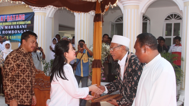 Ende (20/05) -- Menko PMK Puan Maharani didampingi Menpora Imam Nachrawi memberikan bantuan pribadi kepada Masjid Besar Ar Rabithah dan Keuskupan Ende di halaman Masjid Besar Ar Rabithah, pada sela-sela kunjungan kerja ke Ende dalam rangka Upacara Hari Kebangkitan Nasional dan Peninjauan Ekspedisi NKRI 2015. (fik)
