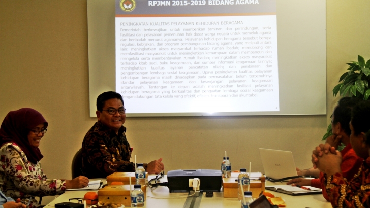 Jakarta (26/01)- Asisten Deputi bidang Koordinasi Pemberdayaan dan Kerukunan Umat Beragama pada Kedeputian bidang Koordinasi Pendidikan dan Agama Kementerian Koordinator Pembangunan Manusia dan Kebudayaan (Kemenko PMK), Arif Darmasyah Adisaputra, memimpin rapat koordinasi Indeks Kerukunan Umat Beragama di Kantor Kemenko PMK, Jakarta, Kamis siang.