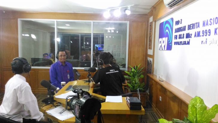 Jakarta (18/07)- Deputi bidang Koordinasi Pendidikan dan Agama Kemenko PMK, Agus Sartono, dan Direktur Penerangan Agama Islam Kementerian Agama, H. Muchtar Ali, menjadi nara sumber pada program Dialog Interaktif bertajuk “MTQ Nasional Upaya Mewujudkan Revolusi Mental dalam Pemantapan Nilai-Nilai Islam Rahmatan Lil’Alamin” di Studio RRI Pro 3 FM Jln. Medan Merdeka Barat, Jakarta Pusat.