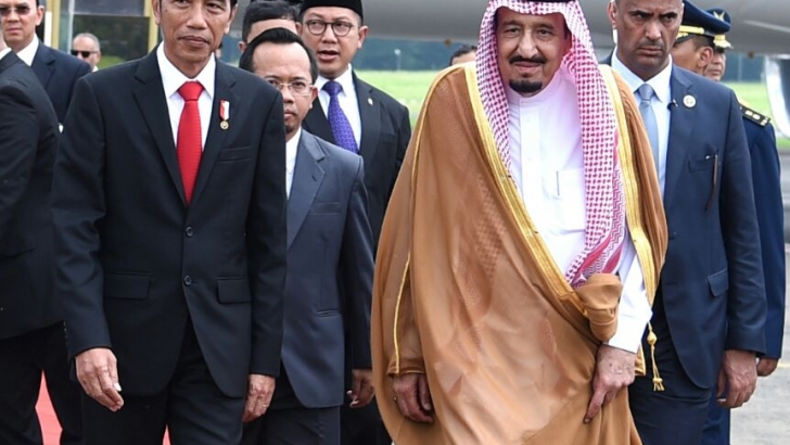 Jakarta (01/03)--- Sebagai balasan atas kunjungan kenegaraan Presiden Joko Widodo di tahun 2015 lalu, Raja Salman bin Abdul Aziz al-Saud, hari ini resmi membalas kunjungan kenegaraan itu. Pesawat milik Kerajaan Arab Saudi yang membawa Raja Arab Saudi Salman bin Abdul Aziz al-Saud mendarat di Bandara Halim Perdanakusuma Jakarta Timur, pada pkl. 12.30 WIB. Begitu turun dari pesawat, rombongan Raja Salman disambut langsung oleh Presiden Joko Widodo. Perlakuan serupa juga sebelumnya diterima oleh Presiden Joko Widodo saat berkunjung ke Arab Saudi tahun 2015 itu.