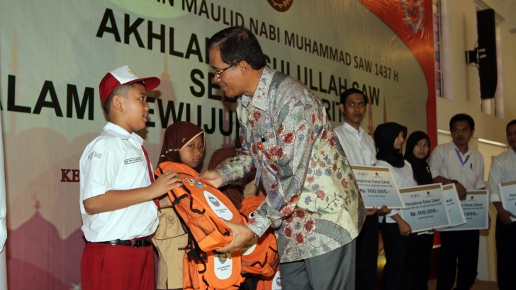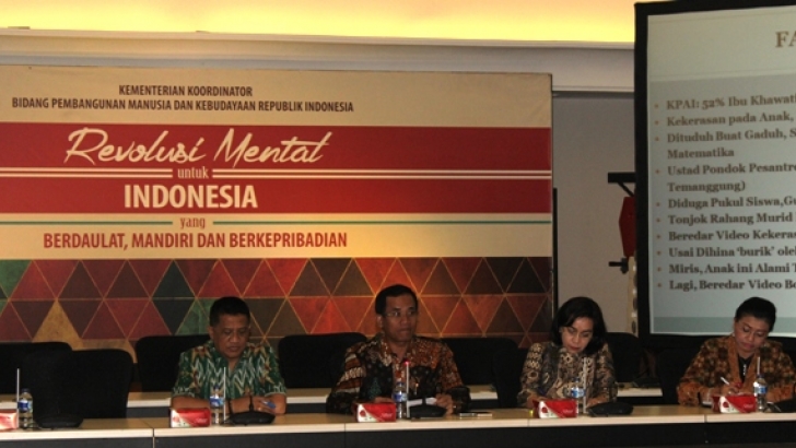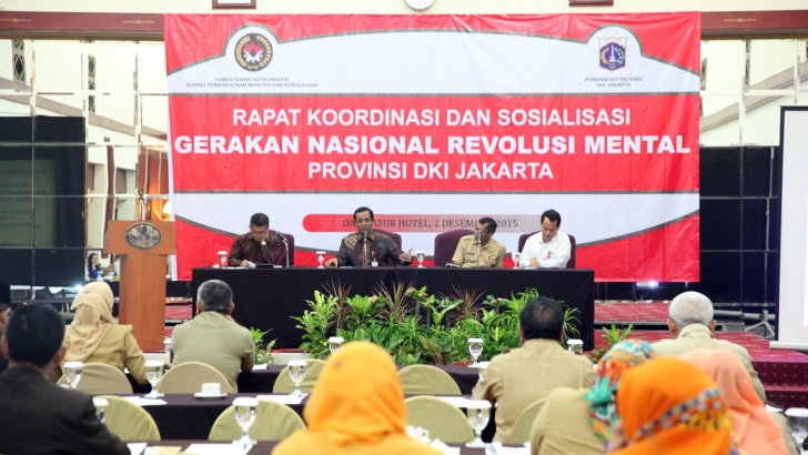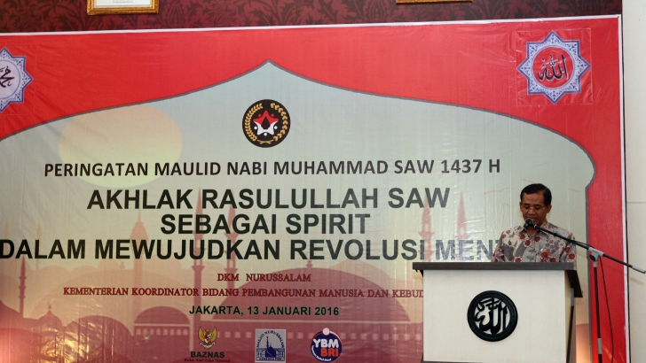 Jakarta, 13 Januari, Menko PMK Puan Maharani yang diwakili PLT Sesmenko PMK yang juga sebagai Deputi Menko PMK Bidang Koordinasi Pendidikan dan Agama, Prof.Dr.R.Agus Sartono, MBA., membacakan Sambutan Menko PMK pada acara peringatan Maulid Nabi Muhammad SAW, Rabu, 13/1/2016, di ruang Heritage Kemenko PMK, Jl. Medan Merdeka Barat No.3, Jakarta.