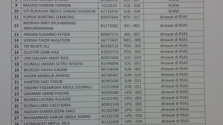 A. Jumlah jemaah yang wafat keseluruhan sebanyak 14 orang, yaitu: