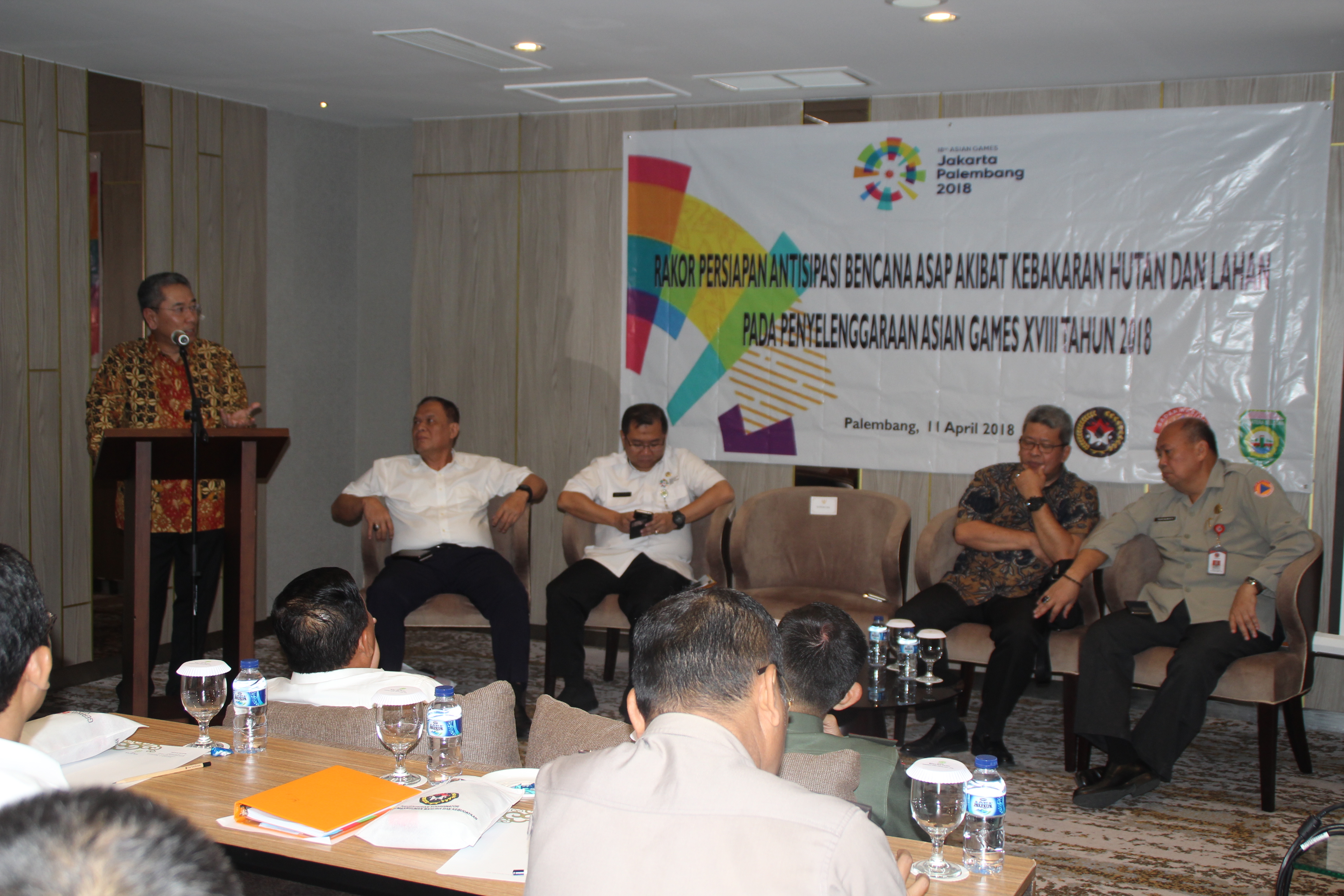 Menurutnya, dalam waktu yang tersisa sedikit ini, semua stakeholder terkait harus terus bersama – sama untuk secara berulang menyisir hal – hal teknis dan detail agar dapat disempurnakan, dan mengantisipasi berbagai kemungkinan buruk yang terjadi termasuk kebakaran hutan yang asapnya dapat sangat menggangu penyelenggaraan Asian Games XVIII 2018. “Melalui rakor ini diharapkan dapat terbangun kooordinasi dan sinkronisasi yang lebih kuat lagi dari aspek kelembagaan dan aspek pelaksanaan program dan kegiatan antisipasi dan penanganan di lapangan,” ujarnya.
