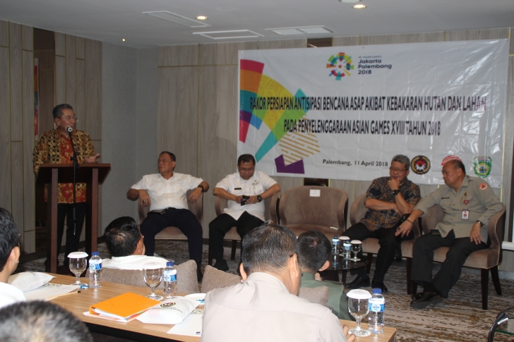 Rakor ini sendiri menghadirkan sejumlah narasumber diantaranya Staf Khusus Gubernur Sumsel Bidang Perubahan Iklim Najib Asmani yang menjelaskan langkah Pemprov Sumsel selama ini dalam penanggulangan dan antispasi Karhutla di wilayahnya. Sementara, Deputi Bidang Koordinasi Kebudayaan Kemenko PMK I Nyoman Shuida memaparkan perlunya mengidentifikasi luas hutan atau lahan yang rawan terbakar lokasi/ karhutla di kabupaten yang ada di Sumsel. Termasuk mewaspadai provinsi lain yang rawan kebakaran hutan dan lahan. Menurut Shuida, antisipasi ini penting mengingat Asian Games merupakan event terbesar kedua setelah Olimpiade. Asian Games XVIII, sebutnya, akan diikuti 45 NOC dengan 10.000 atlet dimana sekitar 2000 atlet akan berada di Palembang.