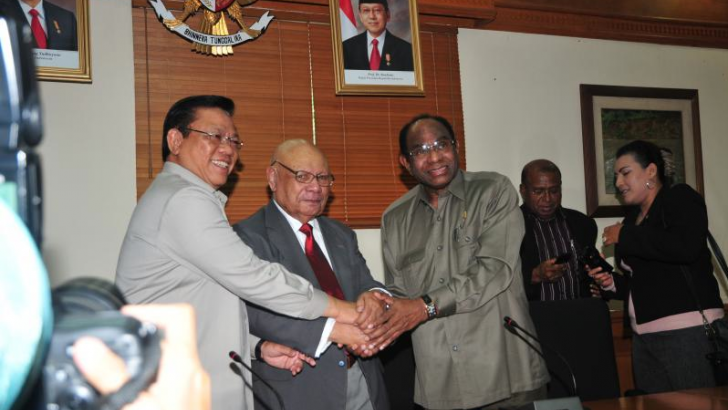 "Beliau kembali ke Papua dan menetap guna membantu pembangunan di sana," ujar Menko Kesra Agung Laksono saat menerima kedatangan Nicolaas dikantor Menko Kesra, Jl Medan Merdeka Barat, Jakarta, Senin (25/1).