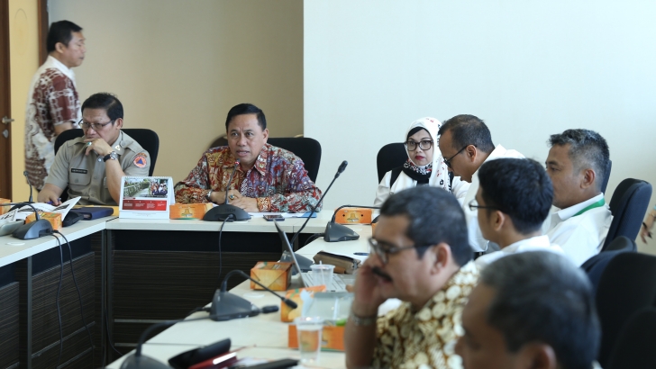Jakarta (16/2) - Deputi Bidang Koordinasi Kerawanan Sosial dan Dampak Bencana Kementerian Korrdinator Bidang Pembangunan Manusia dan Kebudayaan, Masmun Yan Mangesa pagi ini memimpin rakor Teknis siaga darurat banjir dan tanah longsor di ruang rapat lantai 3 Kemenko PMK, Jakarta