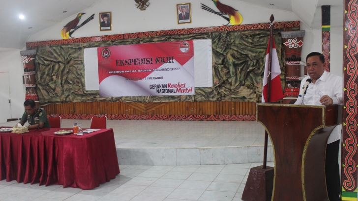 Merauke (19/09)--- Deputi bidang Koordinasi Kerawanan Sosial dan Dampak Bencana Kemenko PMK, Masmun Yan Manggesa, memberikan acara pembekalan kepada peserta ekspedisi NKRI koridor Papua bagian Selatan dan tokoh pemuda di Kodim 1707/Merauke, Selasa kemarin. Acara dihadiri pula oleh Staf Ahli Menteri Bidang Kependudukan, Sonny Harry Budiutomo Harmadi; Danrem 174/ATW, Brigjen Asep S Gunawan; Dandim 1707/Merauke, Letkol Heri Krisdianto; dan koordinator Ekspedisi NKRI tahun 2017, Kolonel Inf Dwi Anggono.