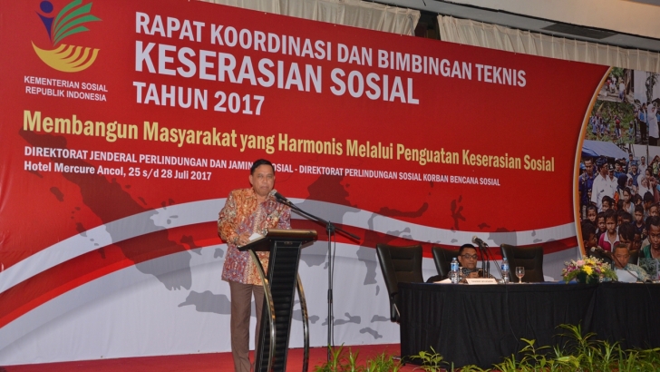 Jakarta (25/07)--- Deputi Bidang Koordinasi Kerawanan Sosial dan Dampak Bencana Kemenko PMK, Masmun Yan Manggesa, menjadi Narasumber dalam Rapat Koordinasi dan Bimbingan Teknis Keserasian Sosial Tahun 2017 dengan tema “Membangun Masyarakat yang Harmonis Melalui Penguatan Keserasian Sosial” dan dihadiri oleh Dinas Sosial Provinsi seluruh Indonesia di Hotel Mercure Ancol, Jakarta Utara.