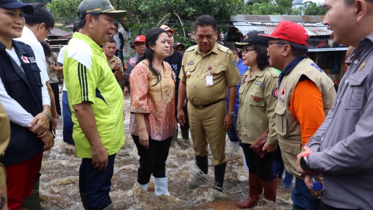 Bitung (13/02)--- Pasca terjadinya banjir yang melanda empat kecamatan di Kota Bitung Minggu sore kemarin, Menko PMK, Puan Maharani, yang tengah menyelesaikan kunjungan kerja dua harinya di Kota Manado, pagi tadi menunda kepulanganny ke Jakarta lalu bergerak menuju Kota Bitung untuk meninjau langsung lokasi dan korban akibat banjir bandang dan tanah longsor itu.
