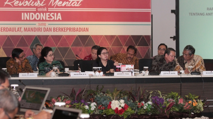 Jakarta (2/09) – Menteri Koordinator Bidang Pembangunan Manusia dan Kebudayaan (Menko PMK) Puan Maharani, memimpin Rapat Koordinasi (Rakor) Tingkat Menteri mengenai antisipasi bencana banjir dan tanah longsor yang terjadi di berbagai wilayah di tanah air. Rakor di hadiri Menteri Kesehatan Nila F. Moeloek; Kepala Badan Nasional Penanggulangan Bencana (BNPB) Willem Rampanggilei; Wakil Menteri Keuangan Mardiasmo; Wakil Gubernur DKI Jakarta Djarot Saiful serta perwakilan Kementerian/Lembaga (K/L) dan Pemda terkait.