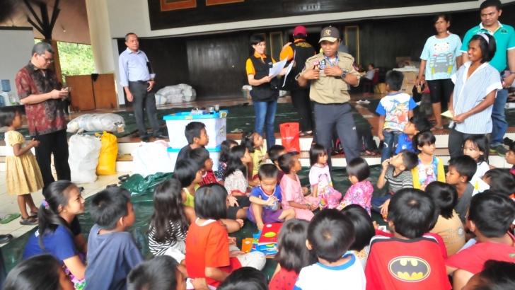 Jakarta, 28 Januari,- Plt Deputi Menko PMK Bidang Koordinasi Kerawanan Sosial dan Dampak Bencana, I Nyoman Shuida yang juga Deputi Menko PMK Bidang Koordinasi Pemberdayaan Masyarakat, Desa dan Kawasan memantau dan menyapa para pengungsi Eks. Gafatar , Kamis, 28/1/2016 pagi, yang ditampung di Gedung Kesenian Nandan Sari dan gedung Olahraga di Kawasan Pramuka Cibubur, Jakarta Timur.(Gs).