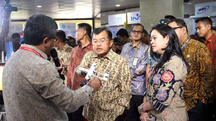 Serpong, 1 Februari 2016 - Menteri Koordinator Bidang Pembangunan Manusia dan Kebudayaan Puan Maharani saat mendampingi Wakil Presiden Jusuf Kalla meninjau stand pameran usai Peresmian Pembukaan Rapat Kerja Nasional (Rakernas) Kementerian Riset, Teknologi dan Pendidikan Tinggi yang mengusung tema membangun Sinergi Ristek dan Dikti untuk meningkatkan Daya Saing Bangsa di Gedung Graha Widya Bhakti Puspitek Serpong Banten, Senin 1 Februari 2016. Foto;ng/humaskemenkopmk