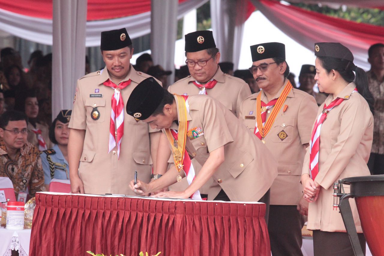 Jakarta (14/08) – Menteri Koordinator Bidang Pembangunan Manusia dan Kebudayaan (Menko PMK) Puan Maharani mendampingi Presiden Joko Widodo dalam membuka Jambore Nasional (Jamnas) X 2016 di Bumi Perkemahan Cibubur. Saat itu, sebagai Ketua Majelis Pembimbing Nasional (Mabinas) Gerakan Pramuka, Presiden memimpin upacara dan menyampaikan sambutannya. Presiden menekankan agar kaum muda lebih bijak dalam menggunakan media sosial. “Jangan lagi menghujat, menghina orang, atau asal bunyi,” ajaknya.