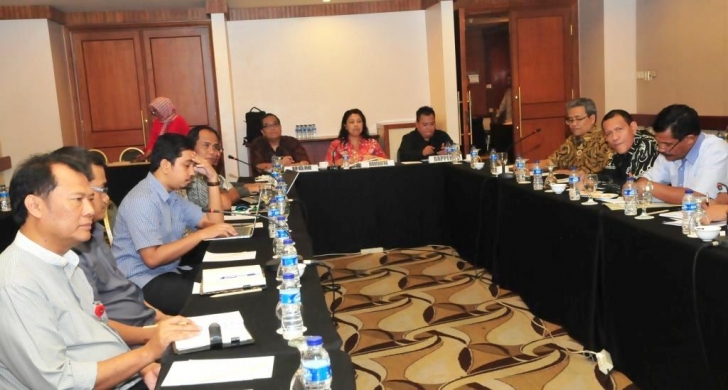 Jakarta, 30 September, - Asisten Deputi Penanganan Kemiskinan, KedeputianBidang koordinasi penanggulangan Kemiskinan dan Perlindungan Sosial Tini Martini, SH.,M.Soc.Sci (kelima kanan) memimpin Diskusi yang bertajuk “Penyempurnaan Peta Jalan penurunan Tingkat Kemiskinan Melalui Sinergi Program Penanggulangan Kemiskinan”, Rabu, 30/9/2015, di Jakarta.(GS).