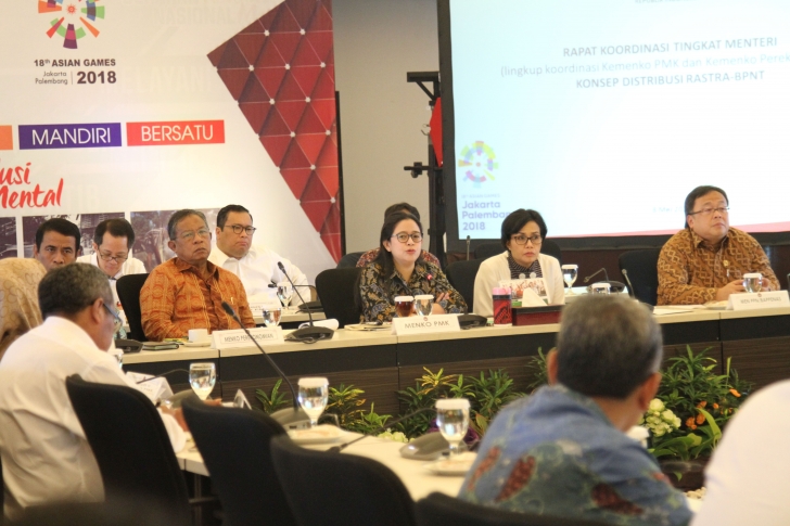 Rakor Tingkat Menteri terkait Konsep Distribusi Rastra-BPNT kali ini selain melibatkan Kementerian/ Lembaga (K/L) di lingkup koordinasi Kemenko PMK juga melibatkan K/L di lingkup koordinasi Kemenko Perekonomian. Hadir dalam Rakor Tingkat Menteri terkait Konsep Distribusi Rastra-BPNT, Menko Perekonomian Darmin Nasution, Menkeu Sri Mulyani, Mentan Amran Sulaiman, Menteri PPN/ Kepala Bappenas Bambang Brodjonegoro serta Kepala BPS Kecuk Suharyanto. PS