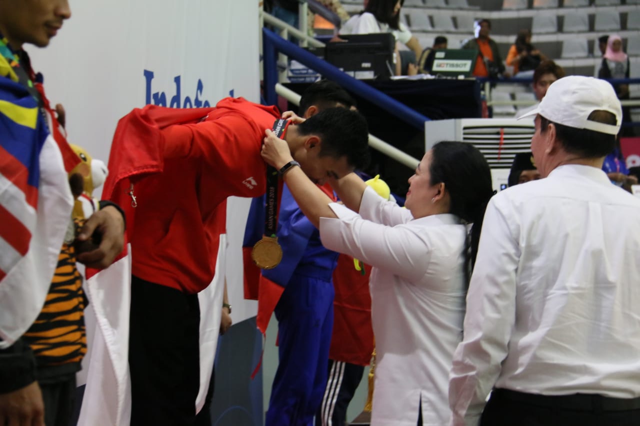 Abdul Malik. Pada pertandingan itu, Abdul Malik juga mengalahkan Muhammad Faizul M Nasir dengan angka telak. Dalam pertandingan sebelumnya yang digelar hari ini, pesilat Indonesia lainnya juga berhasil menang dan meraih medali emas.