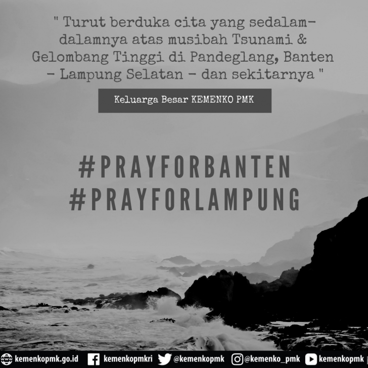 “Saya turut berbelasungkawa yang sedalam-dalamnya atas musibah tsunami dan gelombang tinggi di pantai barat Provinsi Banten. Semoga seluruh keluarga dan masyarakat yang terdampak bencana senantiasa diberikan kekuatan dalam menghadapi cobaan ini” ucap Menko Puan setibanya di Indonesia usai kunjungan kerja ke Riyadh, Arab Saudi.