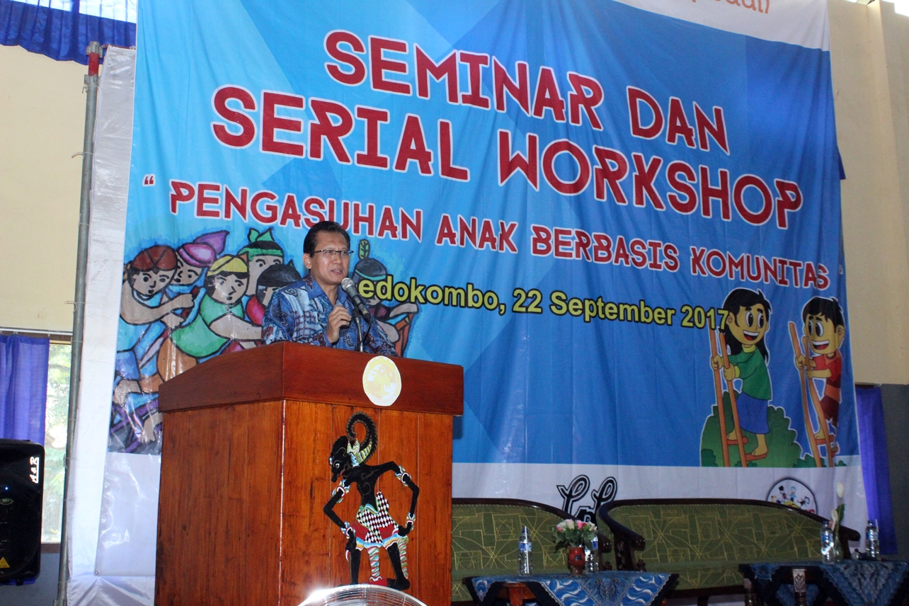 Jakarta (26/09), Deputi Bidang koordinasi Perlindungan Perempuan dan Anak Kemenko PMK, Sujatmiko, memberikan arahan sekaligus membuka secara resmi kegiatan seminar Pengasuhan Anak Berbasis Komunitas. Seminar ini merupakan salah satu rangkaian kegiatan Festival Egrang yang dilaksanakan setiap tahun bagi anak-anak buruh migran di Kabupaten Jember (22/09). Seminar ini diikuti oleh 200 orang anak yang berasal dari Provinsi Jawa Timur, Jawa Barat, NTB, NTT dan DKI Jakarta.