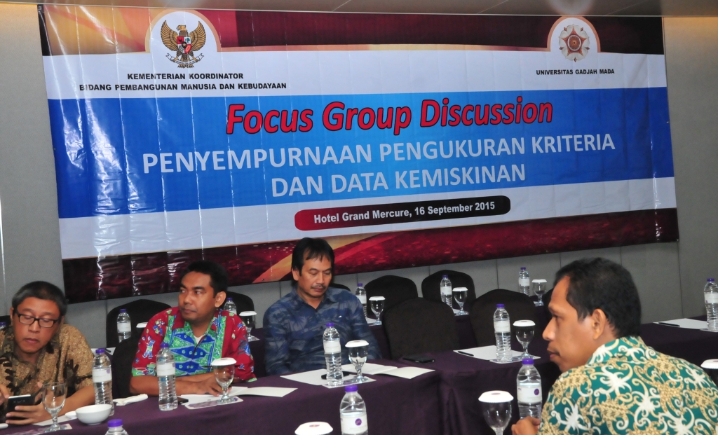 Dalam FGD tersebut menampilkan nara sumber diantaranya dari Universitas Gadjah Mada dengan paparan Issu issu Strategis Penanggulangan Kemiskinan di Indonesia. Dari BPS yang disajikan oleh Thoman Purdasi memaparkan Program Kriteria Kemiskinan Nasional dan Perkembangan pemutakhiran Basis data Terpadu (BDT) 2015. Sedangkan paparan dari Bappenas disampaikan Karim dengan tajuk Kriteria Data Kemiskinan.