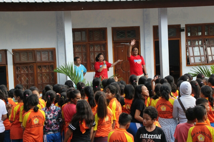 Sosialisasi gerakan Budaya Bersih dan Senyum oleh Kemenko PMK, hari menyambangi dua lokasi sekolah yaitu di Sekolah Yayasan Lentera Hati dan Sekolah Katolik Arnoldus, di Jl.Soekarno – Hatta, Labuan Bajo. Di sekolah Yayasan Lentera Harapan, Sekretariat Revolusi Mental Kemenko PMK menyampaikan paparan komunikatif kepada para siswa tingkat SMP, mulai dari pengenalan GNRM, nilai-nilai yang terkandung di dalamnya, hingga pemutaran film pendek berisikan testimoni masyarakat mengapa Indonesia harus tetap bersih dan gemar senyum.