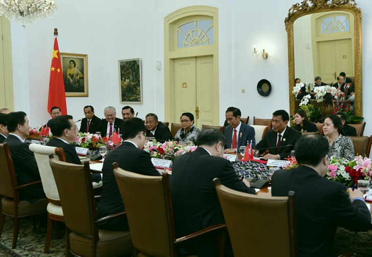 Ketiganya muncul dalam rangkaian penyambutan kunjungan Perdana Menteri Republik Rakyat Tiongkok, Li Keqiang, ke Istana Kepresidenan Bogor, Jawa Barat, Senin, 7 Mei 2018.