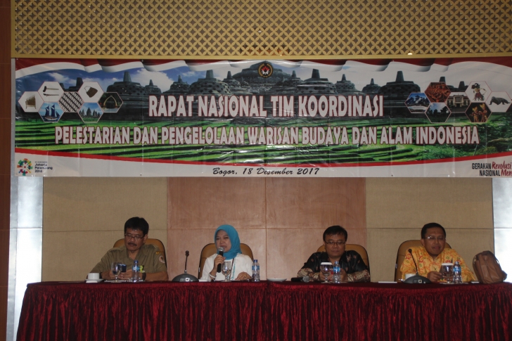 Bogor (18/12)--- Tim Koordinasi Pelestarian dan Pengelolaan Warisan Budaya dan Alam Indonesia telah dibentuk melalui SK Menko PMK No.20/2016 tertanggal 2 September 2016 lalu. Melalui SK Menko PMK ini, ditegaskan bahwa warisan budaya dan alam Indonesia merupakan kekayaan bangsa yang perlu dilesatarikan dan dikelola secara tepat, dilakukan berkelanjutan serta perlu dikoordinasikan lintas kementerian/lembaga. Setelah lebih dari satu tahun, Tim Koordinasi Pelestarian dan Pengelolaan Warisan Budaya dan Alam Indonesia oleh Asisten Deputi Warisan Budaya pada Kedeputian bidang Koordinasi Kebudayaan Kemenko PMK, dimonitoring dan evaluasi sekaligus mengkaji segala program dan kegiatan yang sudah dijalankan selama setahun terakhir. Rapat nasional digelar mulai Senin pagi di Ballroom Hotel Salak Tower, Bogor, Jawa Barat.