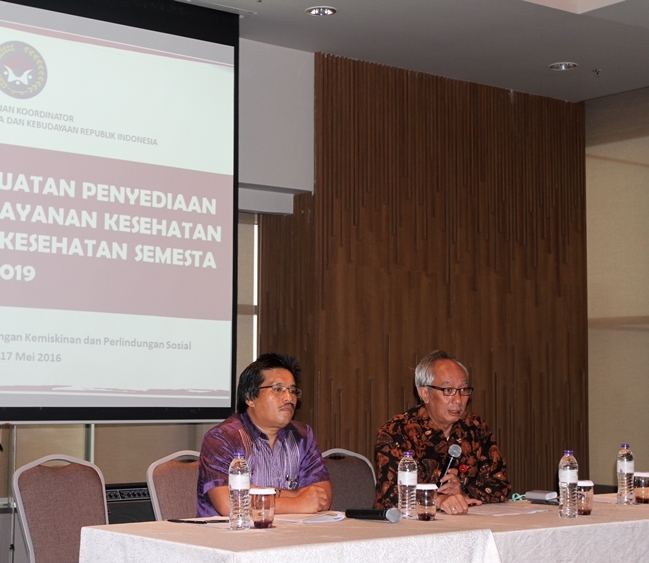 Jakarta (17/05)--- Deputi bidang Koordinasi Penanggulangan Kemiskinan dan Perlindungan Sosial, Tb Achmad Choesni didampingi Asisten Deputi Urusan Jaminan Sosial Togap Simangunsong, membuka workshop bertajuk “Penguatan Penyediaan Fasilitas dan Pelayanan Kesehatan menuju Jaminan Kesehatan Semesta tahun 2019” hari ini di Grand Mercure Hotel, Jakarta.