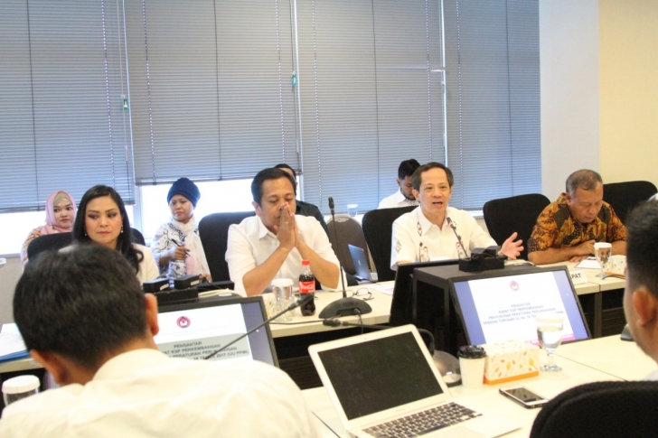 Jakarta (18/12) -- Plt. Deputi Bidang Perlindungan Anak dan Perempuan, Kemenko PMK, Ghafur Dharmaputra, memimpin Rapat koordinasi, sinkronisasi, dan pengendalian (KSP) Perkembangan Penyusunan Peraturan Perundangan Sebagai Turunan UU No. 18 Tahun 2017 (UU PMI). Rapat dilaksanakan di ruang rapat lantai 6 Kemenko PMK. Dalam kesempatan ini Kemenaker diminta segera menuntaskan penyusunan peraturan turunan dari Undang-undang Nomor 18 Tahun 2017 tentang Pelindungan Pekerja Migran Indonesia (PPMI). Batas waktu penyelesaikan pembuatan peraturan turunan ini dua tahun sejak UU diundangkan.