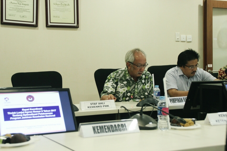 Jakarta (17/01)--- Deputi bidang Koordinasi Penanggulangan Kemiskinan dan Perlindungan Sosial Kemenko PMK, Tb Achmad Choesni, pagi tadi membuka sekaligus memberikan arahan dalam rapat koordinasi terkait tindak lanjut Inpres No.8/2017 tentang Optimalisasi Pelaksanaan Program Jaminan Kesehatan Nasional (JKN) di runag rapat lt.4 gedung Kemenko PMK, Jakarta. “Dari diskusi kita ini saya berharap rencana aksi kita tidak hanya tertulis dan direncanakan begitu saja tetapi kita harus berkomitmen bahwa rencana itu akan kita laksanakan bersama,” kata Choesni dalam pengantarnya.