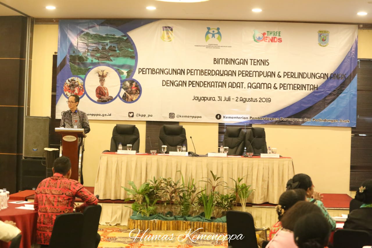 Bimbingan Teknis Pembangunan Pemberdayaan Perempuan dan Perlindungan Anak Dengan Pendekatan Adat sengaja digelar di Provinsi Papua oleh Kementerian PPPA dengan tujuan membangun pemahaman tentang pentingnya perempuan dan anak untuk pembangunan di tanah Papua. Selain itu untuk membangun kesepakatan untuk pemberdayaan perempuan dan perlindungan anak di provinsi tersebut. Termasuk untuk menyusun rencana aksi kegiatan pemberdayaan perempuan dan perlindungan anak dengan perspektif adat, agama dan pemerintah daerah.