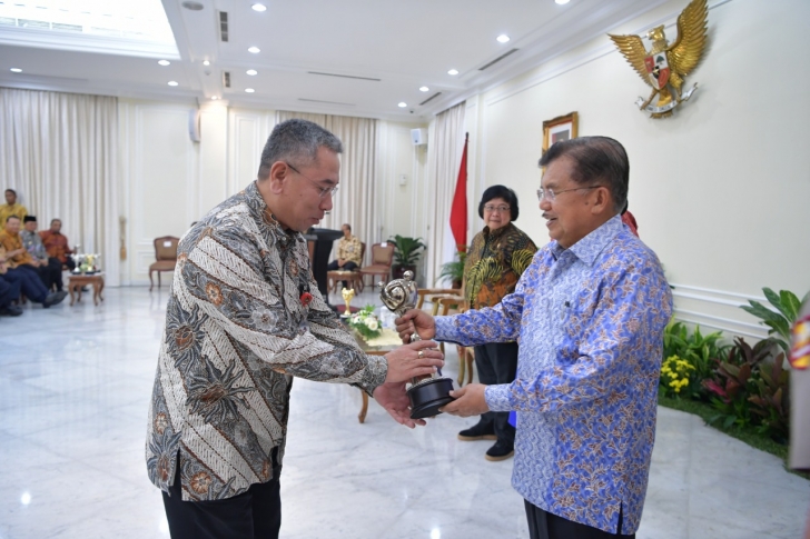 Jakarta (19/12) -- Mewakili Menko PMK, Sekretaris Kementerian Koordinator Bidang Pembangunan Manusia dan Kebudayaan (Setkemenko PMK), YB. Satya Sananugraha menerima Penghargaan Anugerah Parahita Ekapraya (APE) dengan Kategori Khusus yang diserahkan langsung oleh Wakil Presiden (Wapres) M. Jusuf Kalla, di Istana Wakil Presiden, Jakarta (19/12).
