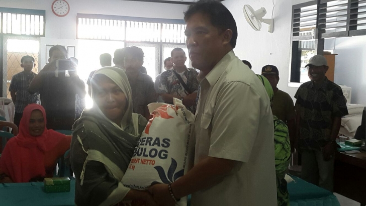 Wani Dua, Donggala (17/09)--- Plt Deputi II Kemenko PMK bidang Koordinasi Penaggulangan Kemiskinan dan Perlindungan Sosial, TB Rachmat Sentika, memberikan bantuan Raskin kepada penerima manfaat yang merupakan perwakilan warga Desa Wani Dua, Kec Tanantovea, Kab Donggala, Sulteng. (kedep II)