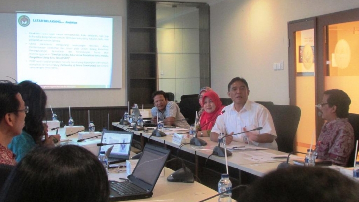 Jakarta, 11 Februari, - Plt. Deputi Menko PMK Bidang Koordinasi Penanggulangan Kemiskinan dan Perlindungan Sosial, Dr.T. Rachmat Sentika (kedua kanan) memimpin Rapat Koordinasi (Rakor) Persiapan Gerakan 1000 Buku Untuk meningkatkan Akses Disabilitas Netra Terhadap Informasi Melalui pengetikan Ulang Buku Teks (PUBT), Kamis, 11/2/2016, siang di ruang rapat lantai IV, Kemenko PMK, Jl. Medan Merdeka Barat No.3, Jakarta Pusat.