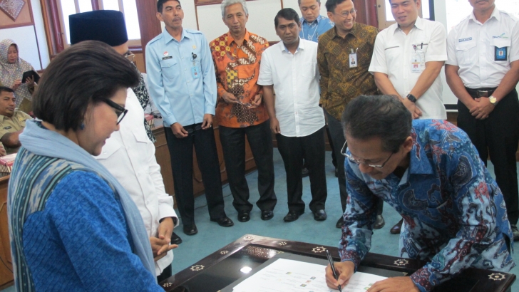 Mataram (08/11)--- Deputi bidang Koordinasi Perlindungan Perempuan dan Anak Kemenko PMK, Sujatmiko; bersama Gubernur NTB, Wakil Pimpinan KPK, Dirjen Binapenta Kemenaker, Sestama BNP2TKI, Kakanwil Hukum dan HAM NTB, Ka BPJS Ketenagakerjaan Cabang NTB, Ka OJK NTB, Wakil Kapolda NTB, Wakil PT. Angkasa Pura I, Bupati Sumbawa, Bupati Lombok Barat, Bupati Lombok Tengah, Bupati Lombok Timur, Bupati Lombok Utara, Bupati Bima, menandatangani komitmen bersama perbaikan tata kelola layanan TKI wilayah Propinsi Nusa Tenggara Barat di Kantor Gubernur NTB.