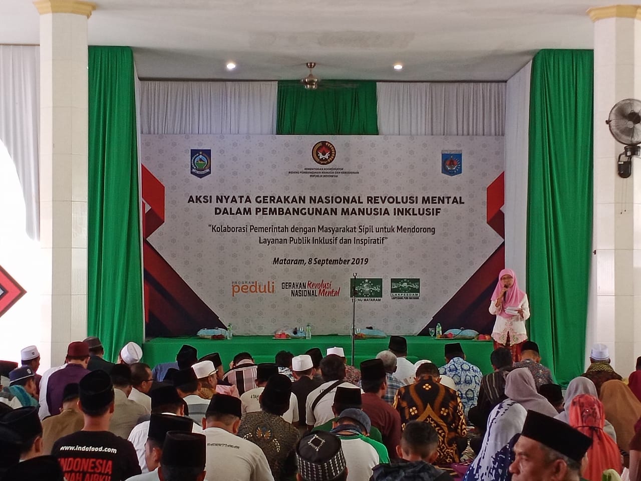 Aksi Nyata GNRM dalam Pembangunan Manusia Inklusif di Mataram, NTB, dibuka oleh Sekretaris Daerah Provinsi NTB, H. Iswandi. Acara dilanjutkan penyerahan secara simbolik Kartu Tanda Penduduk (KTP), Kartu Keluarga (KK) dan Kartu Identitas Anak (KIA).