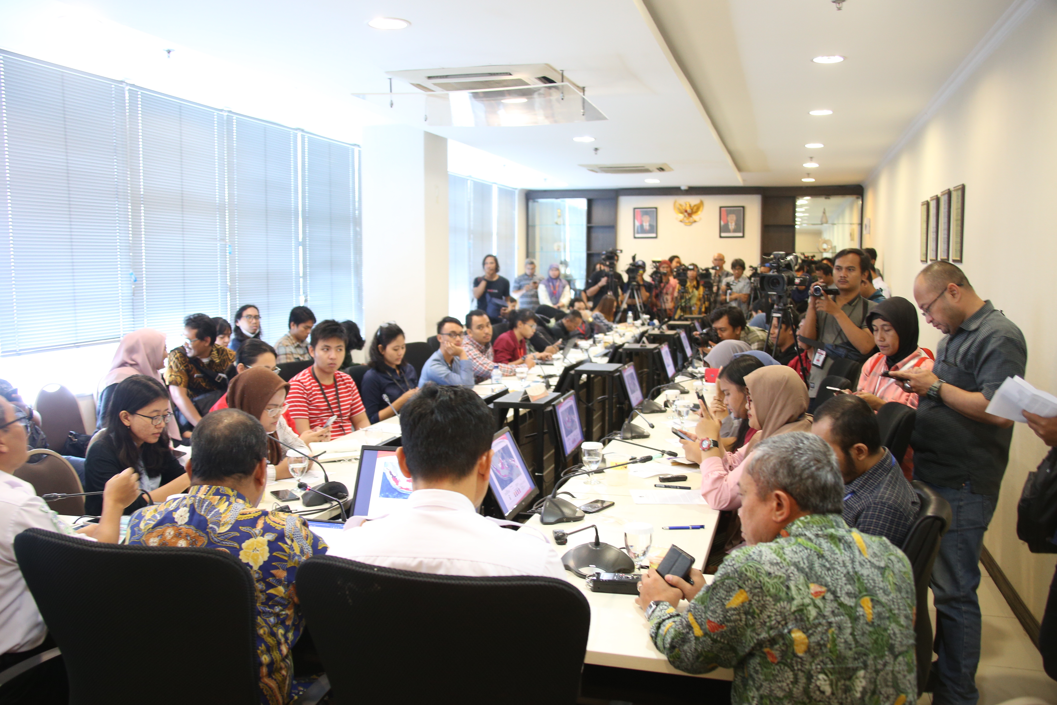 Jakarta (30/07)--- “Negara akan terus hadir untuk mengatasi dan membantu masyarakat yang terdampak bencana kekeringan dan Karhutla. Kementerian dan Lembaga Negara di bawah koordinasi Kemenko PMK akan terus bekerja keras menangani bencana kekeringan dan Karhutla ini mulai dari antisipasi sampai nanti rehabilitasi dan rekonstruksinya. Kita bersama juga tentu ingin kedua bencana musim kemarau ini dapat tuntas bahkan hingga titik nol atau tidak ada lagi hotspot baik Karhutla maupun kekeringan.” Demikian penegasan Deputi bidang Koordinasi Kerawanan Sosial dan Dampak Bencana, Kemenko PMK, Dody Usodo HGS dalam konferensi pers yang membahas tentang antisipasi potensi bencana kekeringan dan Karhutla, Selasa pagi di ruang rapat besar lt.3 gedung Kemenko PMK, Jakarta. Turut mendampingi Dody dalam Konpers kali ini  Deputi bidang Klimatologi, BMKG yang diwakili oleh Plh. Deputi bidang Klimatologi; dan Kepala Balai Besar Teknologi Modifikasi Cuaca BPPT, Tri Handoko Seto.