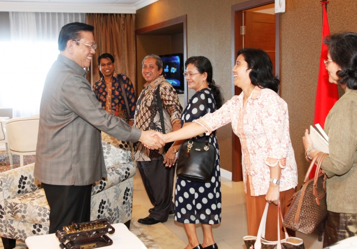Jakarta, 17 September 2014 - Menteri Koordinator Bidang Kesejahteraan Rakyat HR. Agung Laksono didampingi istri Sylvia Amelia Laksono menerima kunjungan Jemaat Gereja Kristen Tebenakel Indonesia (GKTI) di ruang kerjanya, pada Rabu (17/9). Rombongan dipimpin langsung oleh Pastur Peter Wiliantono. (foto:deni)