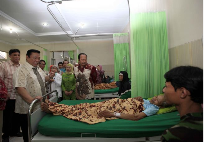 Kuningan, 14/07- Menko Kesra Agung Laksono dalam kunjungan kerja Ramadhan 1434H meninjau Rumah Sakit Umum Daerah 45 di Kab. Kuningan Jawa Barat pada Sabtu 13/07/2013. Menko Kesra sempatkan berdialog dengan pasien Rumah Sakit tersebut. foto; diannovico