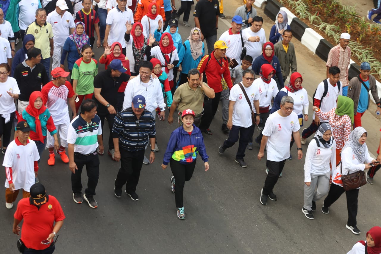 Palembang (12/08) -- Bertempat di kantor Gubernur Sumatera Selatan, Minggu pagi Menko PMK Puan Maharani melepas peserta Jalan Sehat Asian Games XVIII 2018. Ini merupakan upaya pemerintah dalam mensukseskan Asian Games XVIII 2018.