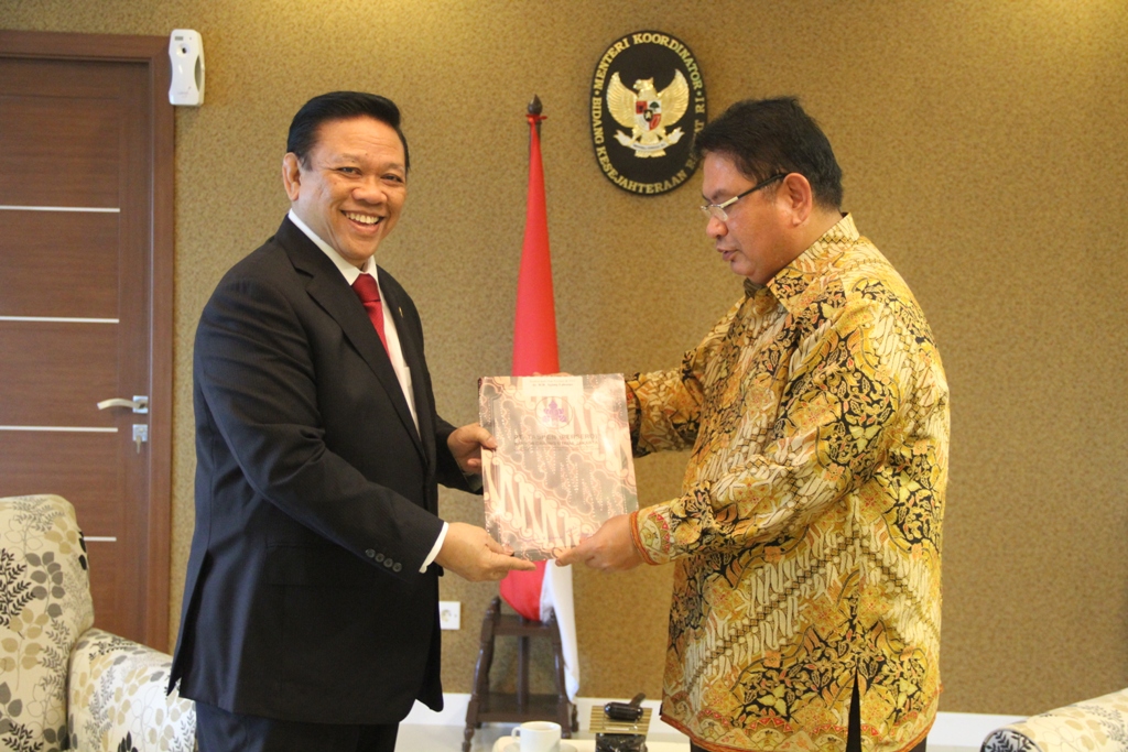 Jakarta, 16 Oktober – Menko Kesra HR. Agung Laksono menerima tabungan Hari Tua (THT) dari TASPEN yang diserahkan oleh Direktur Utama PT TASPEN (Persero) Iqbal Latanro, Rabu (15/10/2014) sore.(Foto:Tp/Gs).