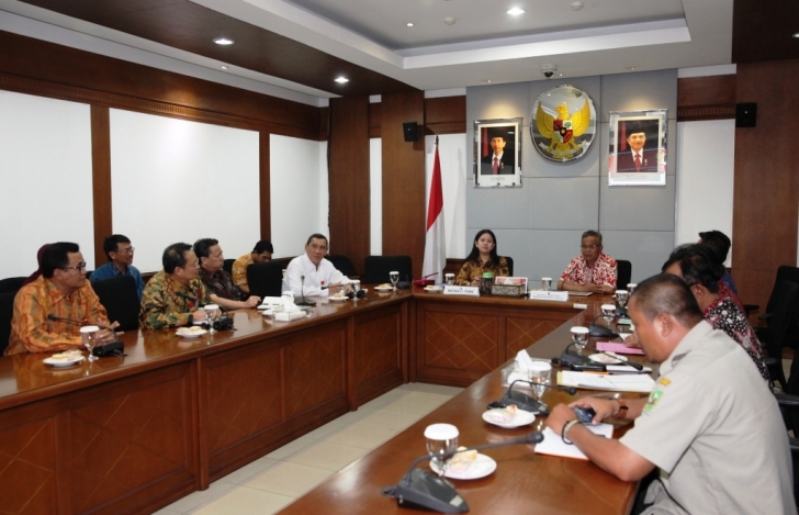 Jakarta (05/08) - Menteri Koordinator Bidang Pembangunan Manusia dan Kebudayaan (Menko PMK) Puan Maharani, mendengarkan paparan Wakil Bupati Banjarnegara Hadi Supeno dalam audiensi di Kantor Kemenko PMK, Jakarta. Sempat dibahas penyelenggaraan Festival Serayu 2015 yang akan berlangsung pada akhir Agustus ini. (Humas)