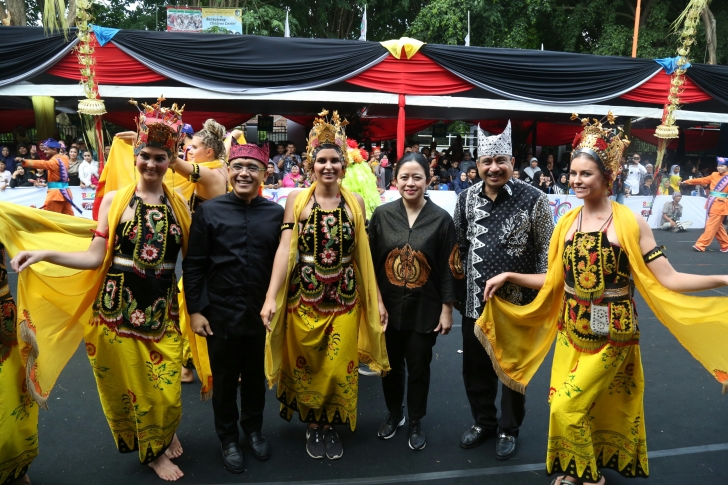 Banyuwangi, Jatim (11/11)--- Menko PMK, Puan Maharani, siang tadi membuka pesta budaya tahunan ‘Banyuwangi Ethno Carnival (BEC)’ di komplek Taman Blambangan, Banyuwangi, Jawa Timur. Adapun thema Banyuwangi Ethno Carnival 2017 ini adalah “Majestic Ijen” yang akan mempertontonkan keagungan Gunung Ijen yang sangat dibanggakan Masyarakat Banyuwangi. Explorasi Gunung Ijen akan disuguhkan melalui peragaan kostum bertema penambang belerang, blue fire, dan kawah Ijen.