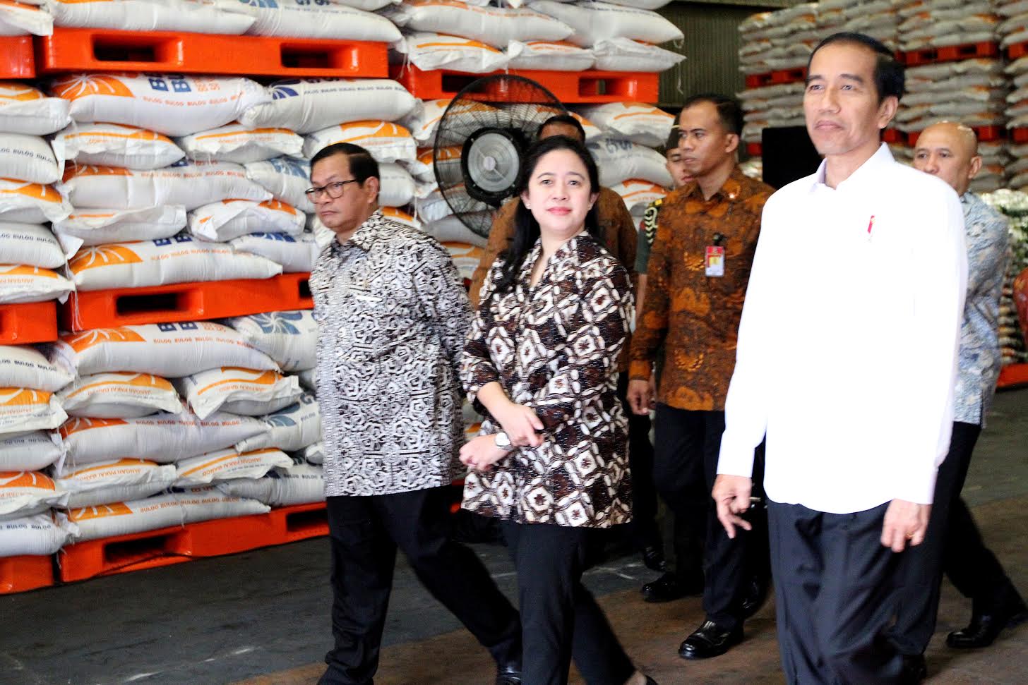 Jakarta (14/02) - Bertempat di Gudang Bulog Kelapa Gading, Jakarta, Menteri Koordinator Bidang Pembangunan Manusia dan Kebudayaan (Menko PMK) Puan Maharani, mendampingi Presiden Joko Widodo untuk memberikan bantuan hibah 5.000 metrik ton beras kepada Pemerintah Srilanka.