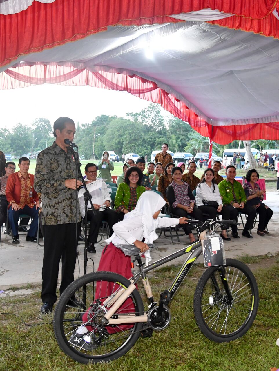 Sebelum menyaksikan Pemberian Makanan Tambahan (PMT), Presiden, Ibu Iriana, Menko PMK, dan Menteri Kabinet Kerja lainnya melihat pembangunan perpustaan desa seluas 132 m2 di Desa Mantaren II Kabupaten Pulang Pisau dengan biaya Rp. 215.616.000 yang berasal dari Anggaran Dana Desa 2016 Selain itu, Presiden juga melihat pembangunan jalan lingkungan sepanjang 70 meter di Jl Veteran I RT I Desa Mantaren dengan biaya. Rp. 28.616.000 yang juga berasal dari Anggaran Dana Desa 2016.