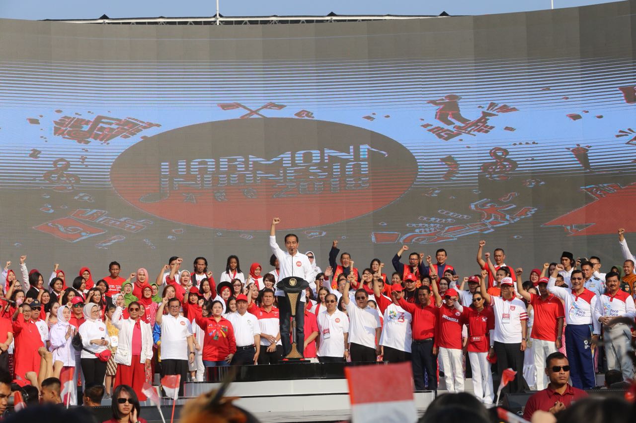 Presiden Jokowi mengingatkan bahwa semangat persatuan adalah aset terbesar bangsa. Dalam sambutannya, Presiden Jokowi juga mengajak masyarakat untuk memberikan semangat pada para atlet yang akan berlaga di Asian Games 2018.