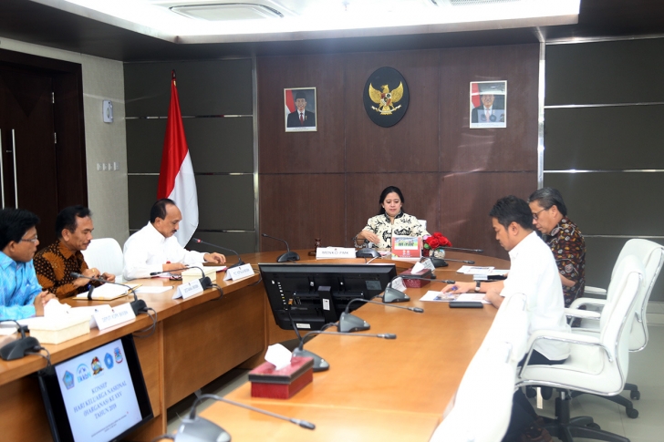 Menko PMK menerima audiensi BKKBN dalam Rangka Persiapan Penyelenggaraan Hari Keluarga Nasional XXV Tahun 2018 yang rencananya akan diselenggarakan di Manado, Sulawesi Utara, Juli mendatang. Audiensi dilakukan di Ruang Rapat Menko PMK, Senin (21/5).