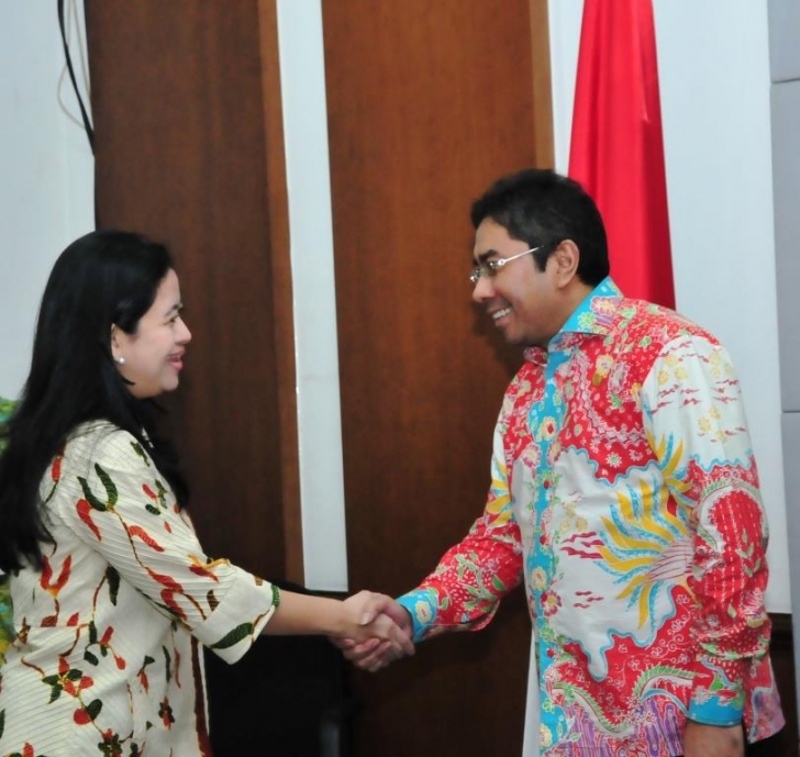 Jakarta, 25 Nopember - Menko PMK Puan Maharani (kanan) menerima Dirut BPJS Ketenagakerjaan Elvyn Masassya (kiri), Selasa (25/11/2014) di ruang rapat menko PMK, Kemenko PMK, Jl. Medan Merdeka Barat No3, Jakarta (Gs).
