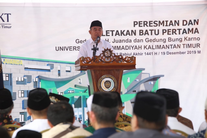 Samarinda (19/12) ---- "Sebagai Menko PMK, saya senang karena dapat memenuhi janji saya untuk hadir di Universitas Muhammadiyah Kalimantan Timur (UMKT). Selain itu saya juga mengapresiasi perkembangan UMKT selama dua tahun ini yang telah mengimpor Rektor dari Universitas Muhammadiyah Surakarta (UMS). Ini merupakan salah satu kerjasama yang baik antara UMKT dan UMS", tutur Menteri Koordinator Bidang Pembangunan Manusia dan Kebudayaan (Menko PMK) Muhadjir Effendy saat menyampaikan sambutan pada peresmian gedung Ir. H. Juanda Universitas Muhammadiyah Kalimantan Timur.